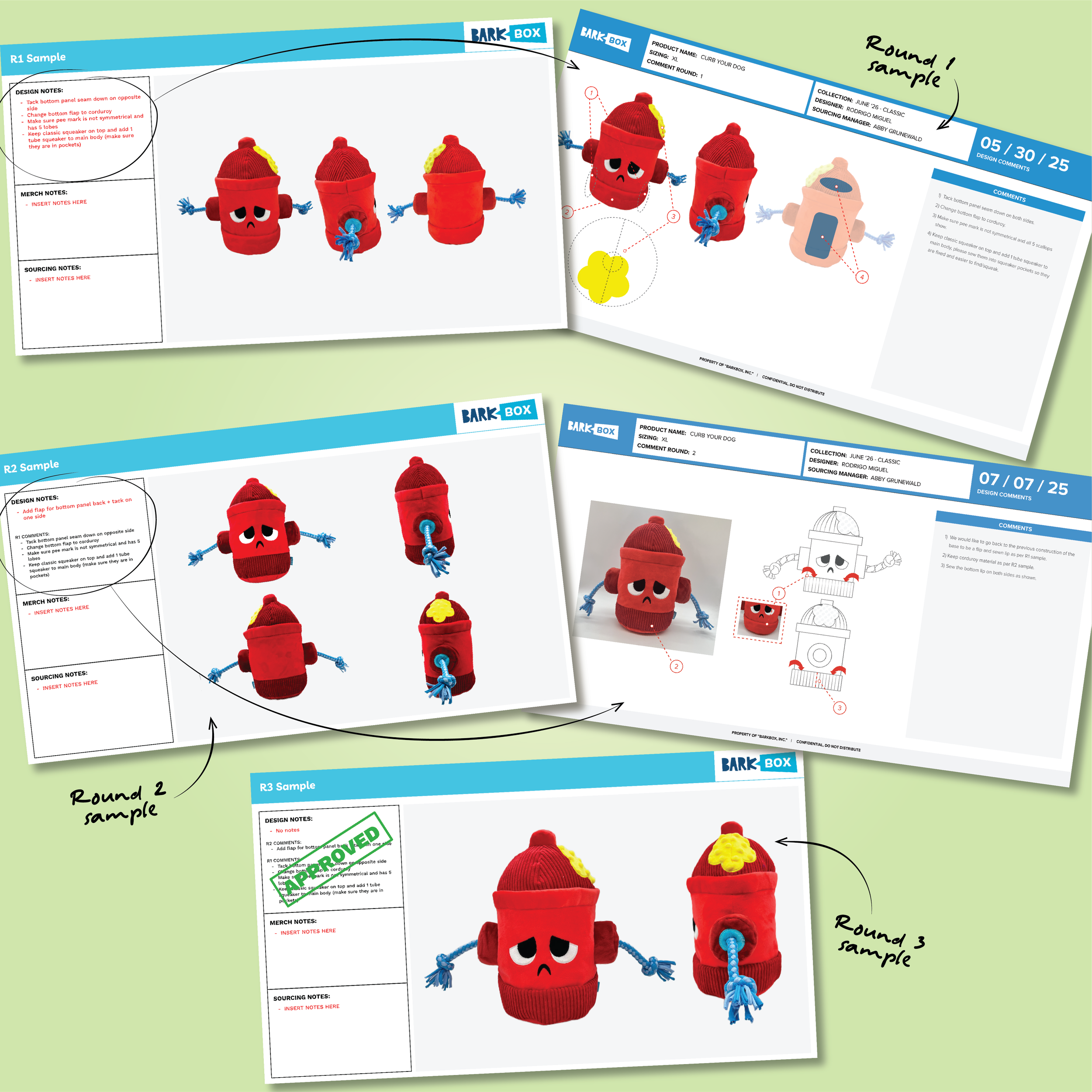 One of the most unique aspects of BARK’s workflow is our monthly subscription model. Design timelines are staggered and always in motion—we may be kicking off August’s box while finalizing July’s assortment and approving production orders for November. This overlapping cadence requires strategic planning, coordination, and deep collaboration across teams.