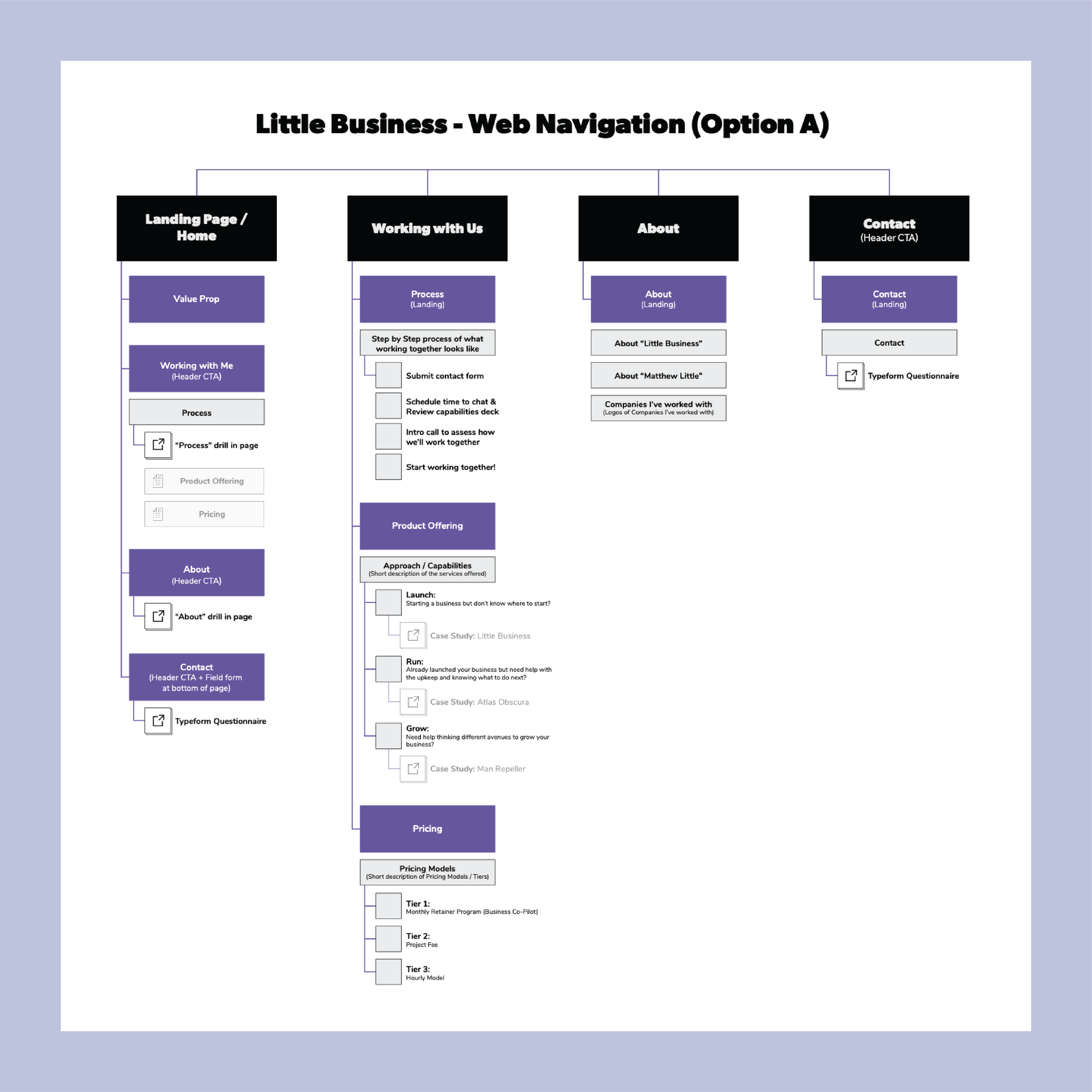 Little Business is an independent business operations and management platform aimed at helping small business owners run their work with clarity and efficiency. I was brought on to shape the content experience, define the information architecture, and design a visual system that communicated trust and accessibility.